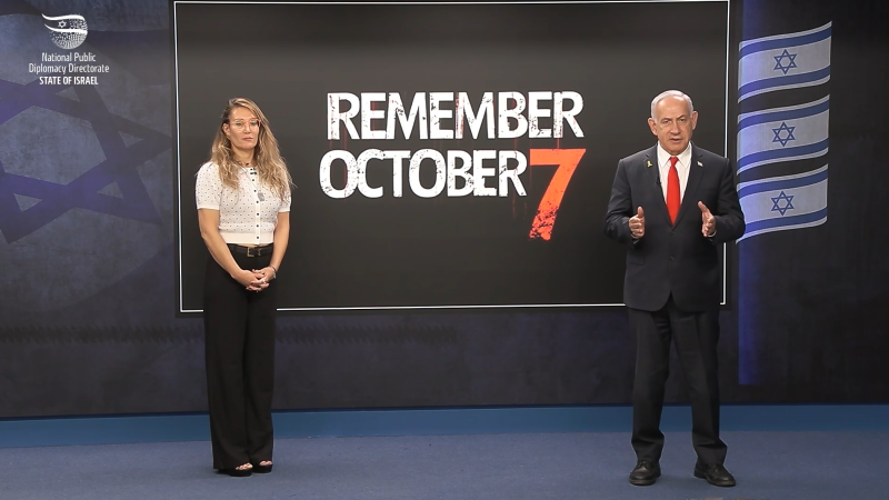 In the video released on Friday, Sabine Taasa – whose husband and eldest son were killed on October 7 – stands next to Prime Minister Benjamin Netanyahu as he introduces the clip.